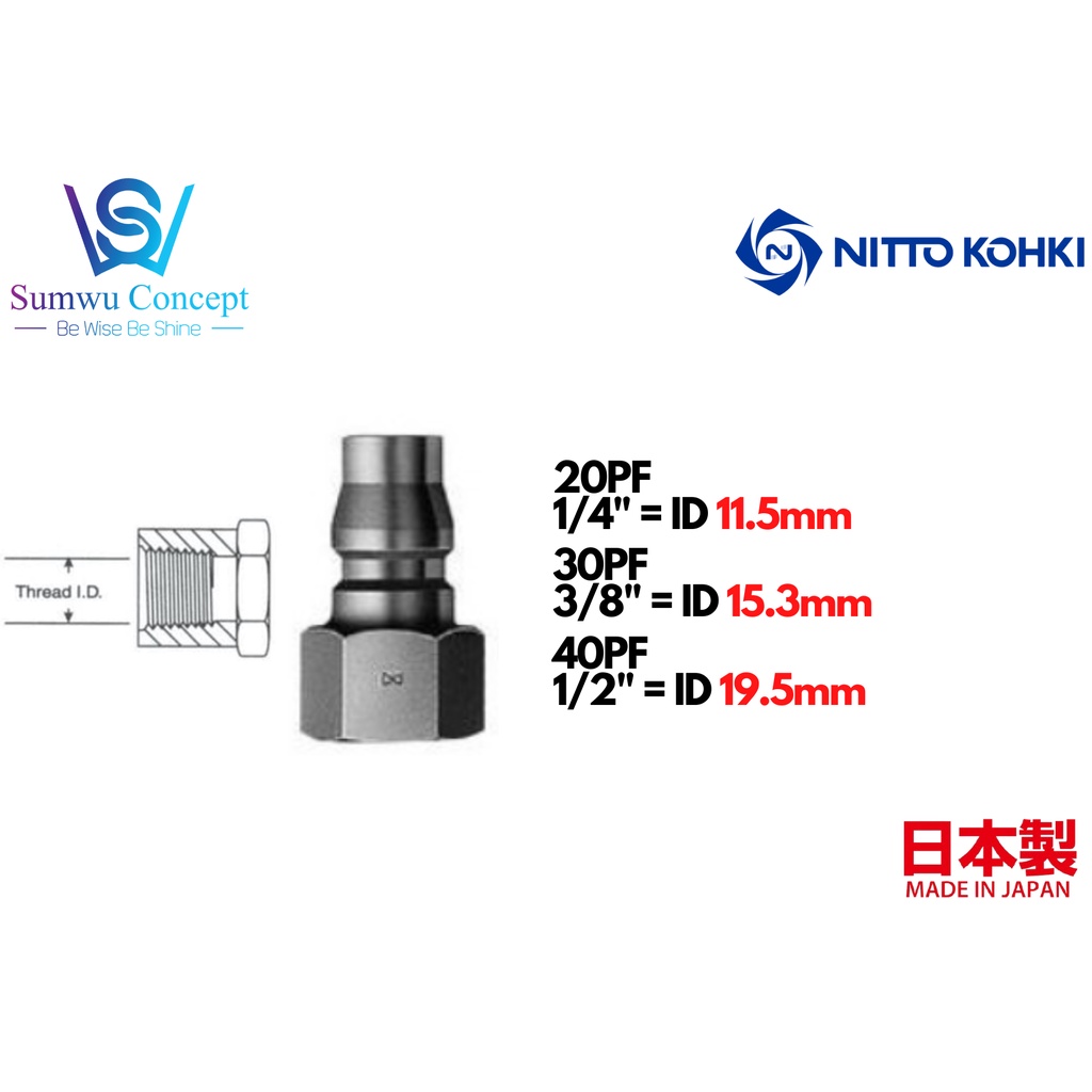NITTO KOHKI Hi Cupla Air Coupling for Air Compressor, Air Coupler 20,30,40 Series Socket and Plug, Nitto Coupler