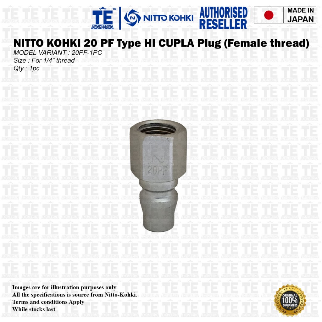 NITTO KOHKI PF Type Pneumatic Air Quick Coupler ( HI CUPLA 20 PF, 30 PF, 40 PF ) 1PC