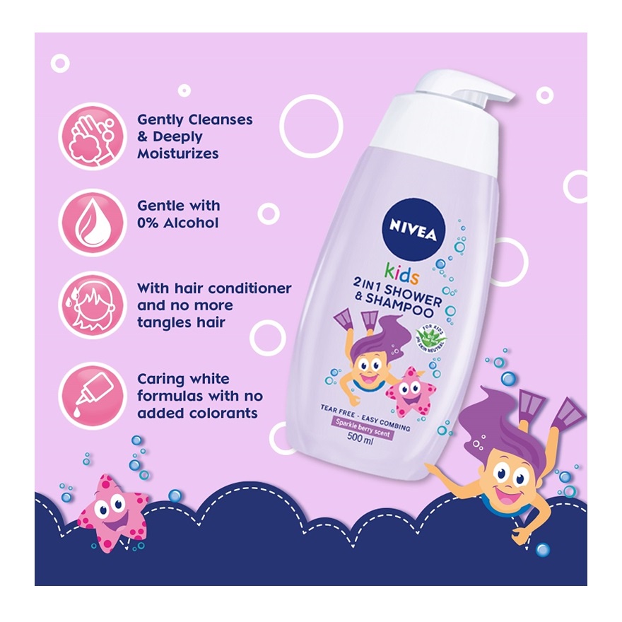 NIVEA BABY Kids 2 in 1 Shower & Shampoo Sparkle Berry 500ml