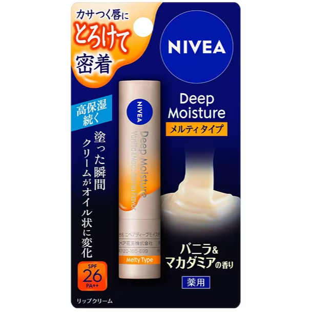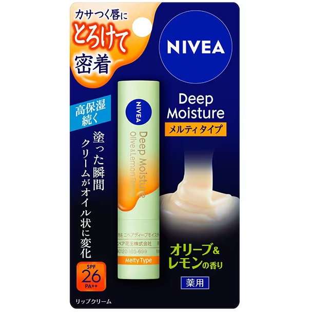NIVEA Deep Moisture Lip Balm [Melty Type] 2.2g SPF26/PA++ [4 Flavors] [Direct from JAPAN]