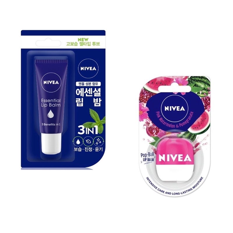 NIVEA Lip Care Pop Ball Pink - Watermelon & Pomegranate (7g) /Nivea Essential Jelly Lip Balm 10g