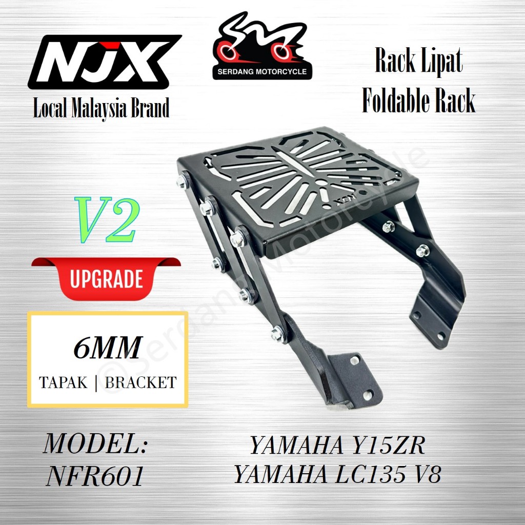 NJX Rack Lipat V2 6mm Rak Kotak Motosikal Heavy Duty Foldable Bracket Y15 Y16 RSX LC RS JBstyle Top Box