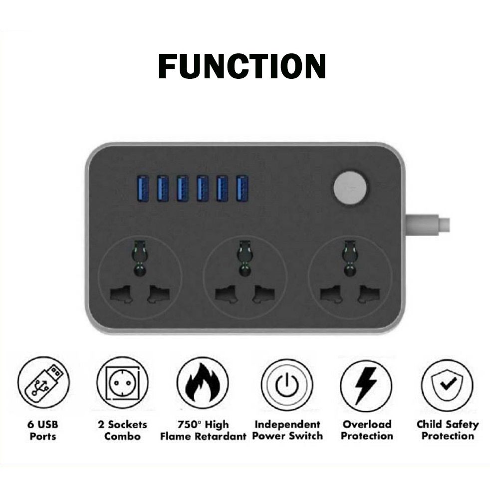 NNS Universal Power Strip Extension Plug with 1.8m Extension Cord Type C USB Port Charge Electrical Socket