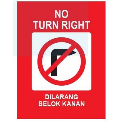 NO TURN RIGHT SIGN 400MM X 300MM X 1.0MM RIGID PVC SIGN