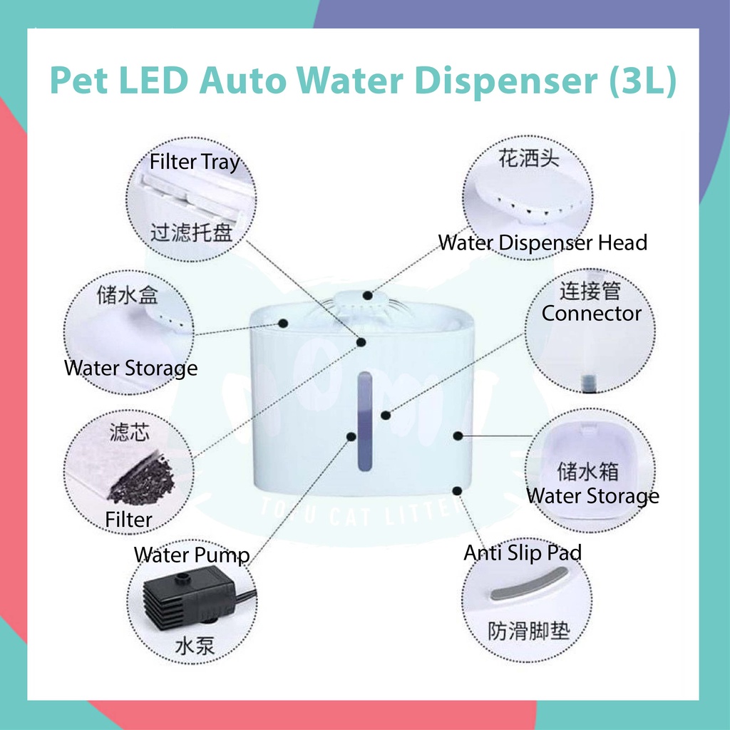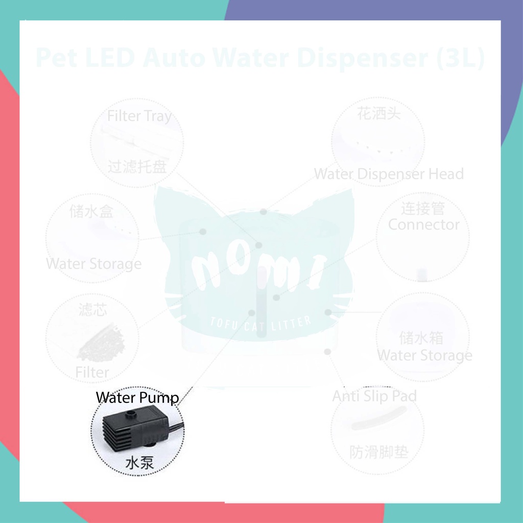 NOMI Pet Filter Water Fountain Cat Dog Water Feeder Drinking Bowl 3L Water Dispenser Electric Automatic 宠物饮水机