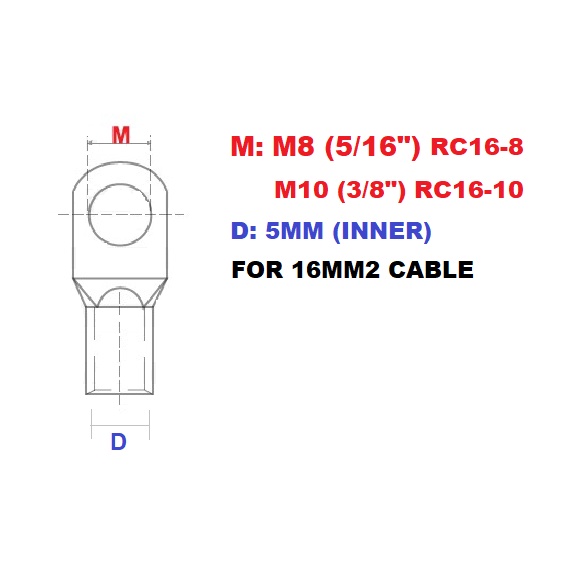 NON INSULATED RING LUG FOR 16MM2 WIRE CABLE, RING TERMINAL, CALBE LUG, BATTERY TERMINAL RC16-8, RC16-10