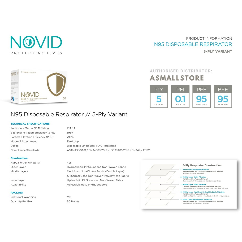 NOVID N95 5-Ply Disposable Respirator [Individually Packed: 50pcs/box]