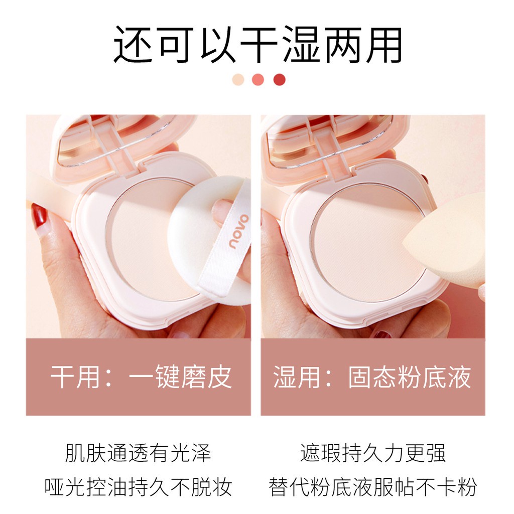 NOVO Pressed Powder Makeup Powder With Puff Waterproof Matte Flawless Full Coverage Concealer Oil Control Foundation Face Base Makeup NO.5440