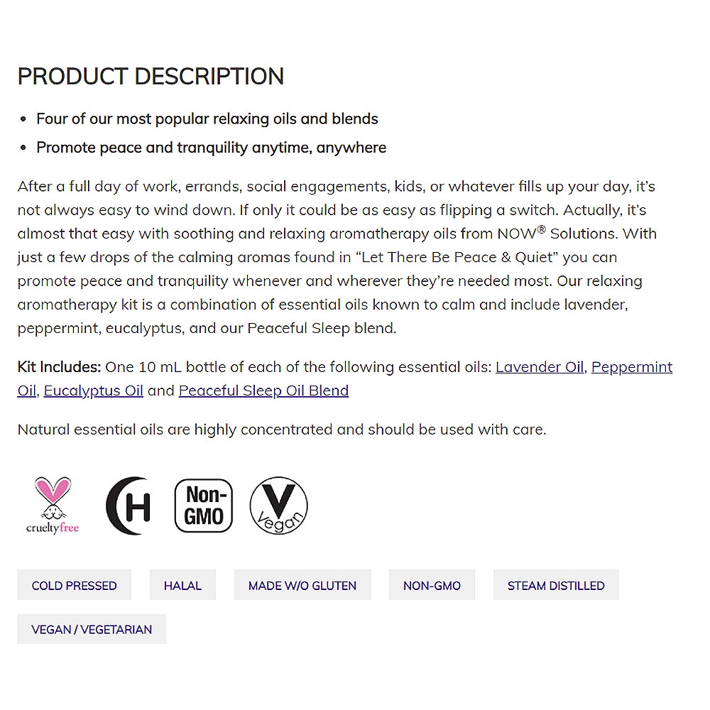NOW Essential Oils Let There Be Peace & Quiet Aromatherapy Kit (4 x 10ml)