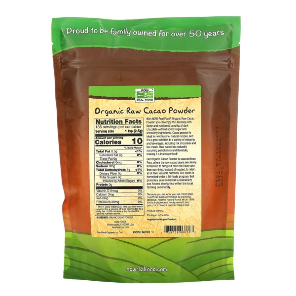 NOW Natural Foods, Organic Raw Cacao Powder, with Polyphenols and Flavonols, Sun-Dried