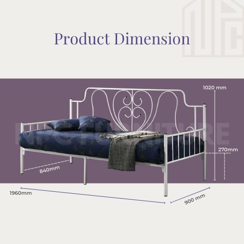 NPC Ready Stock White Loving DAY BED SINGLE METAL BED FRAME / KATIL BESI PUTIH SINGLE - DB 95011