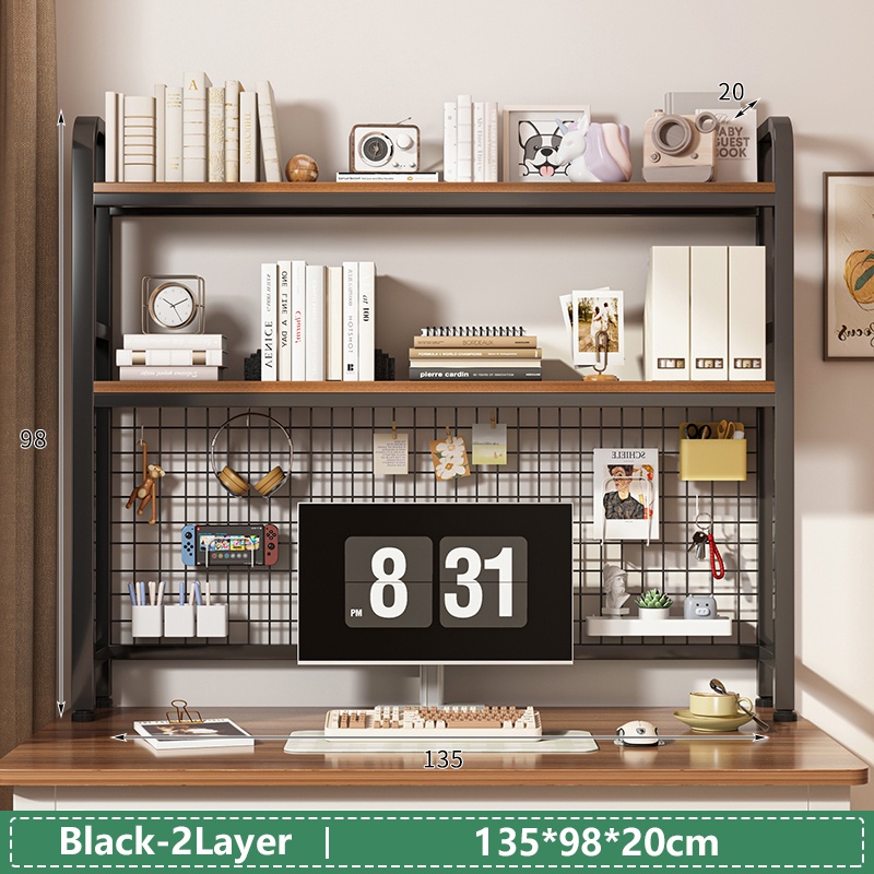 NR 2 Layer Desktop Storage Shelf Office Table Organizer Rack Multipurpose Book Shelf With Hanging Net Rak Buku Desktop