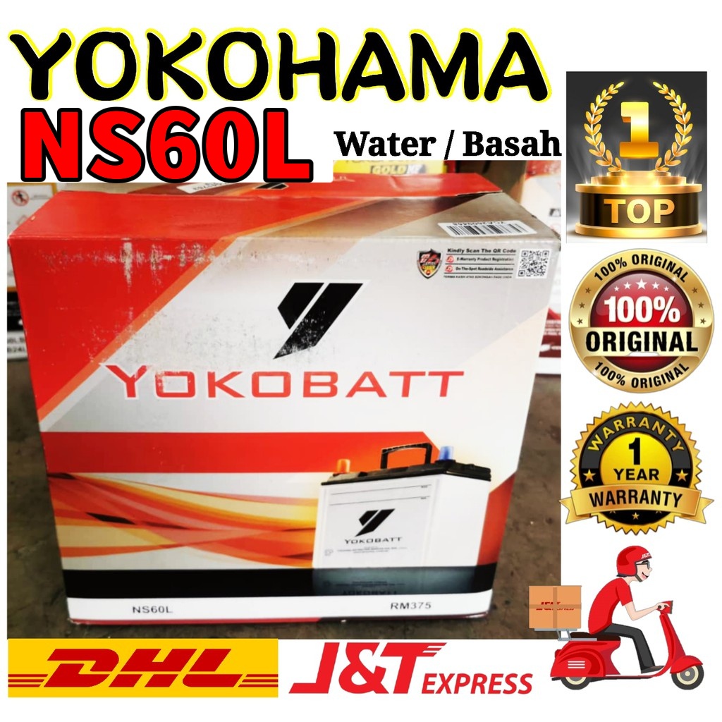 NS60L Yokobatt Water (Basah)Bateri Kereta Car Bettery (Fast shipping & Ready stock)