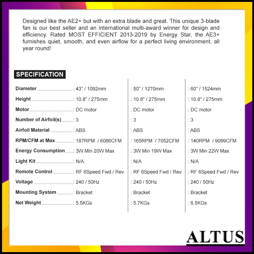 NSB FAN AERATRON 3 AE3+ 50" DESIGNER DC CEILING FAN REMOTE CONTROL NSB CEILING FAN