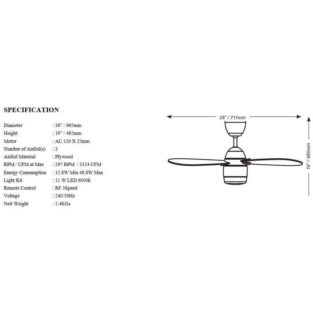 NSB WIWI 38" Remote Control Ceiling Fan