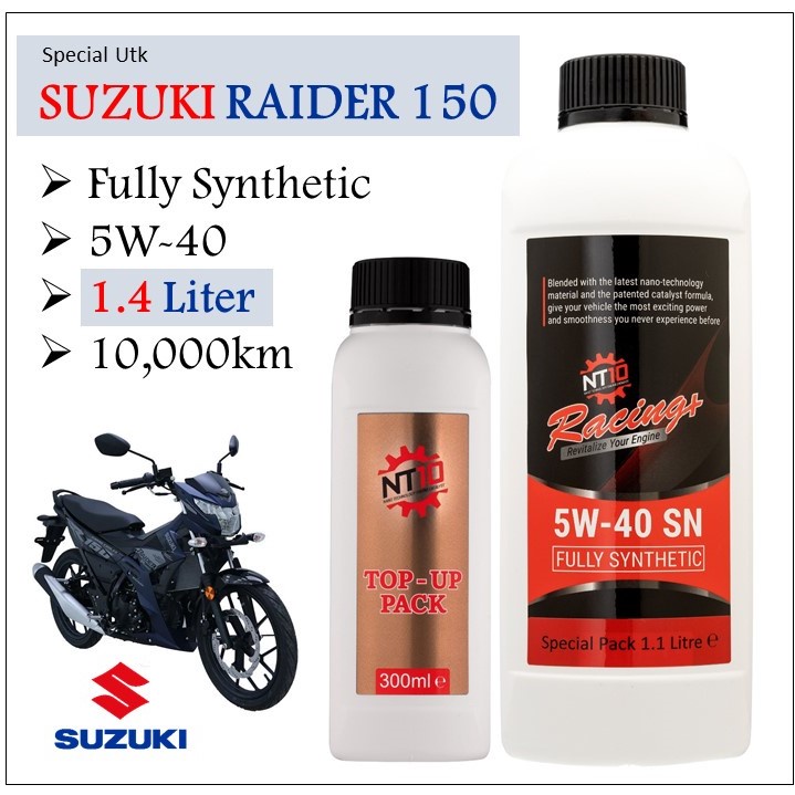 NT10 RACING+ 5w40 1.4 Liter Fully Synthetic Motorcycle Engine Oil Suzuki Raider 150 Minyak Hitam Enjin Motosika 4t