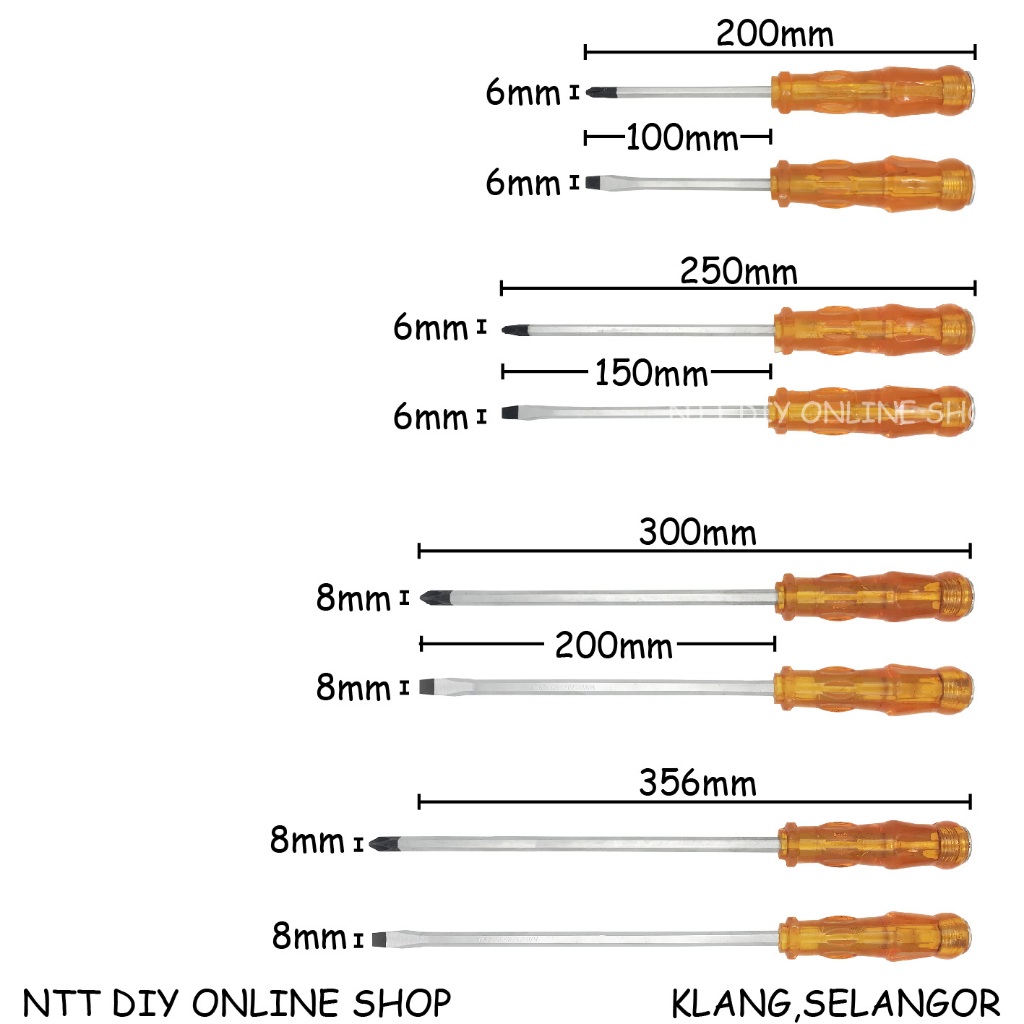 NTT DIY Heavy Duty Screw Driver Impact Screwdriver Flat / Philips Head (Strong Magnetic & Knocking Impact)