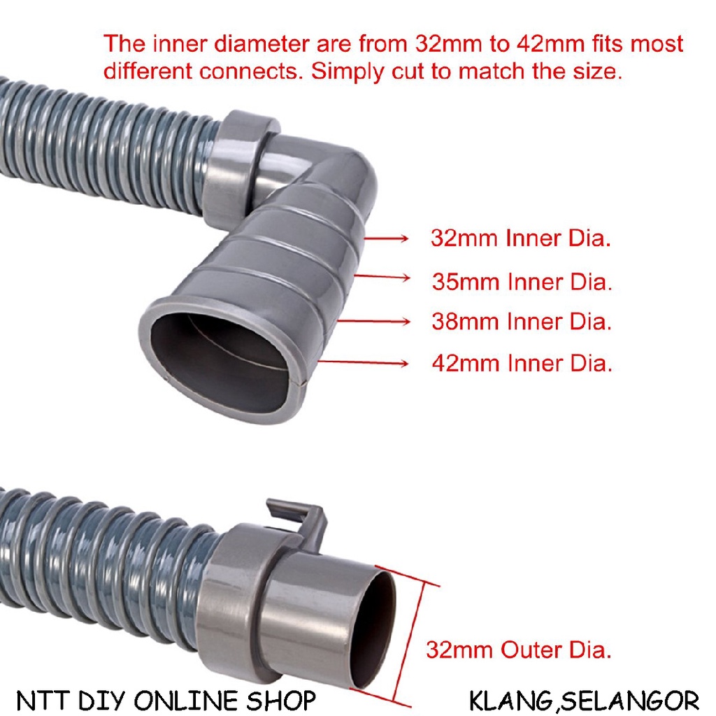 NTT DIY L-Shape Multipurpose Washing Machine Drain Outlet Hose Universal Washing Machine Multi Purpose Outlet Drain Hose