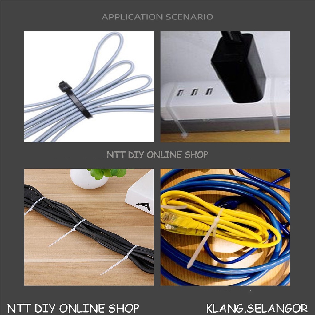 NTT DIY Pengikat Kabel Nilon Plastik mengunci sendiri 100PCS Putih & Hitam / Self-locking Plastic Nylon Cable Tie 100pcs