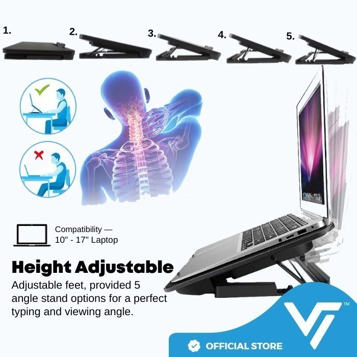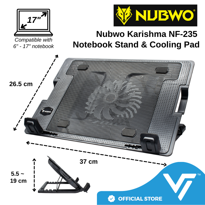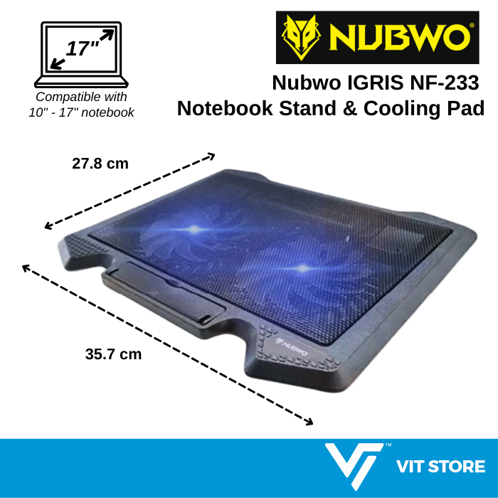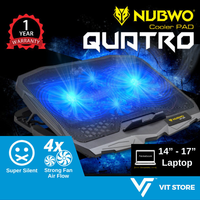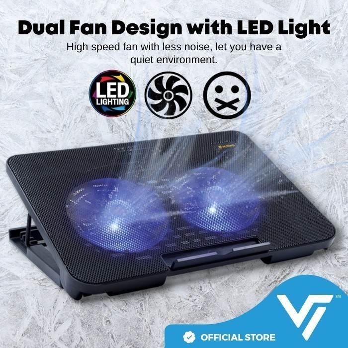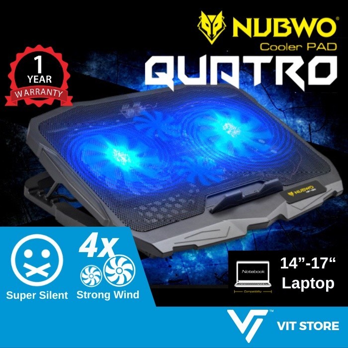 NUBWO Kipas Laptop Stand with Blue LED 2 Fan Silent 14"-17" | Cooling High Gaming Cooler Pad 電腦 散熱器