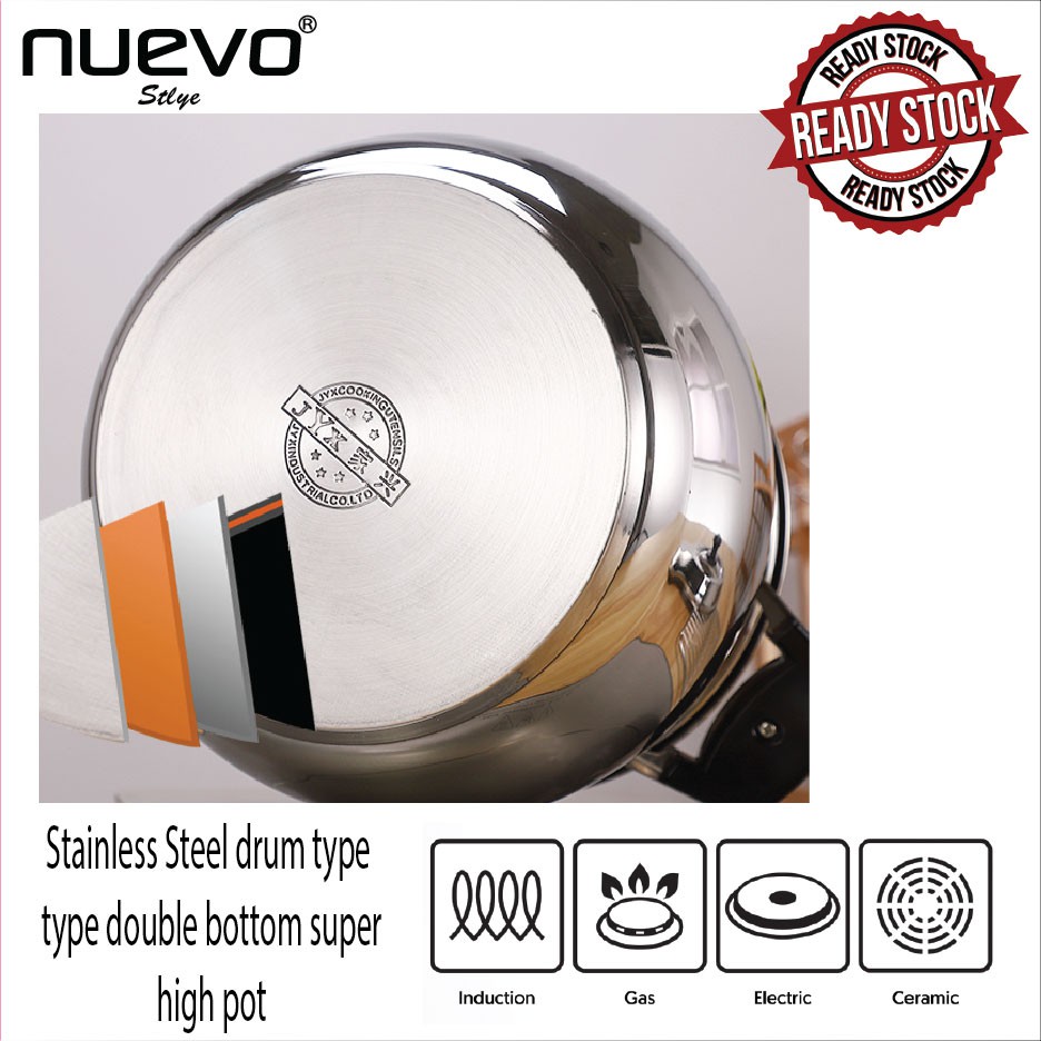 NUEVO STYLE Stainless steel drum type soup pot 不锈钢鼓式汤锅Periuk sup jenis drum keluli tahan karat