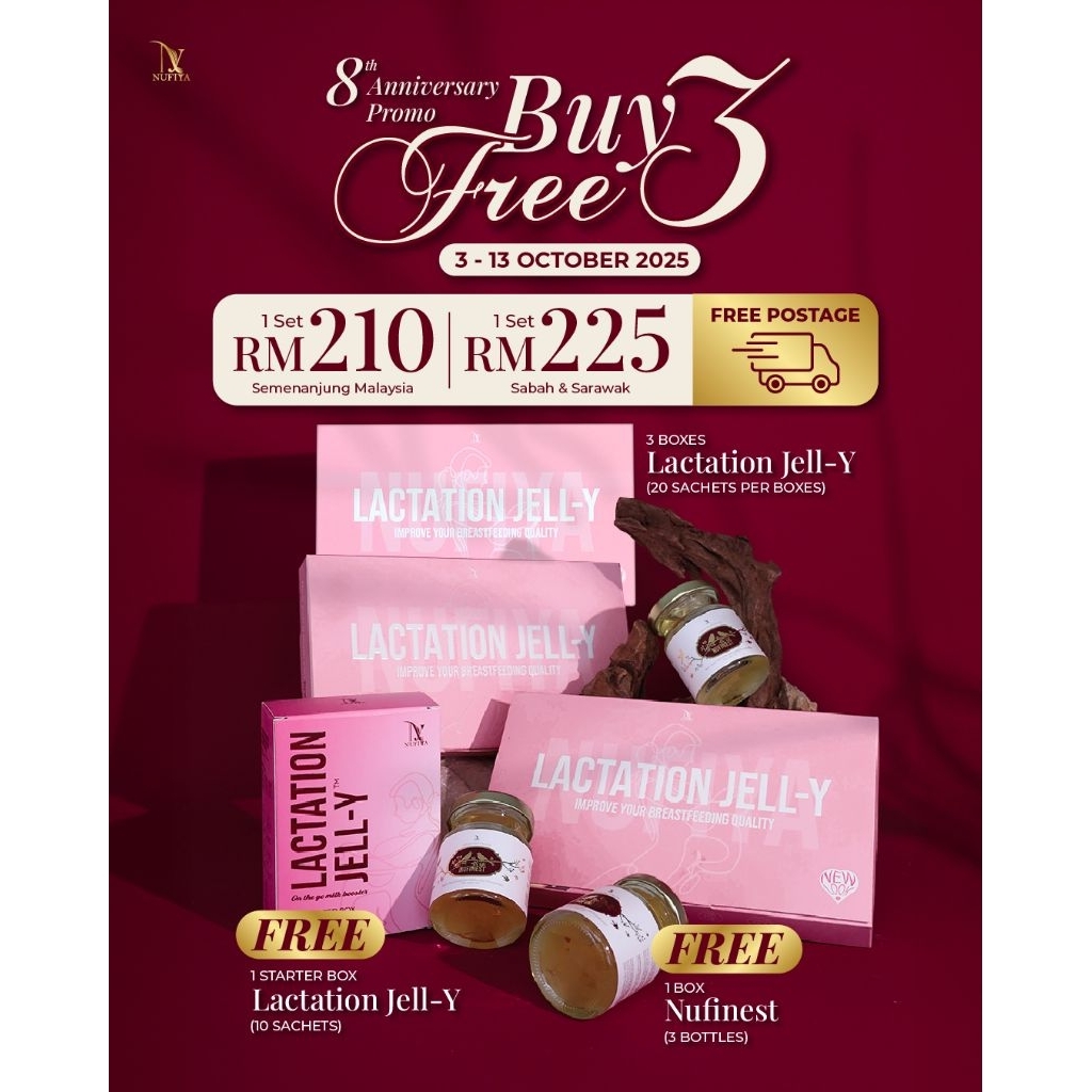 <POST TODAY> ANNIVERSARY PROMO 🎉 NUFIYA LACTATION JELLY‼️ MILK BOOSTER SET TAMBAH SUSU DALAM 3 HARI