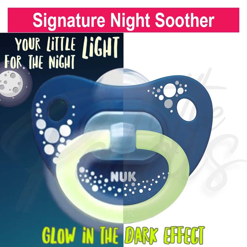 NUK Soother Pacifier NIGHT & DAY / SIGNATURE NIGHT [ 0-6m/ 6-18m ] Night Time Glow in the Dark Silicone Puting Kosong