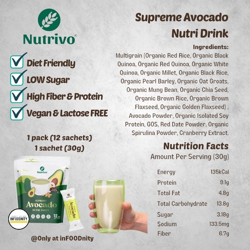 NUTRIVO Supreme Avocado Drink Nutrivo Avocado Powder Drink Avocado Multigrain Avocado Drink Matcha Powder Drink