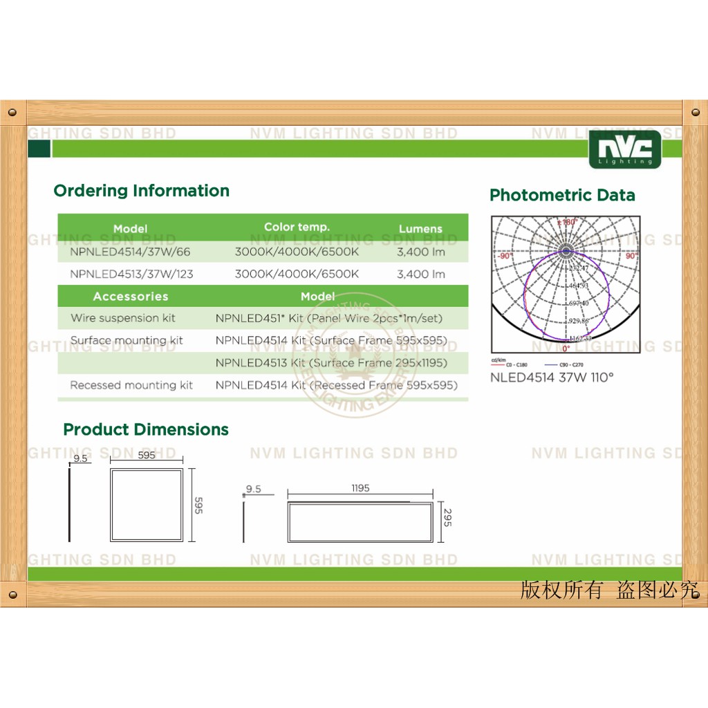 NVC NPNLED4514 LED Ceiling Panel Light 43w Daylight Upgrated High Lumen Lampu Panel Siling LED
