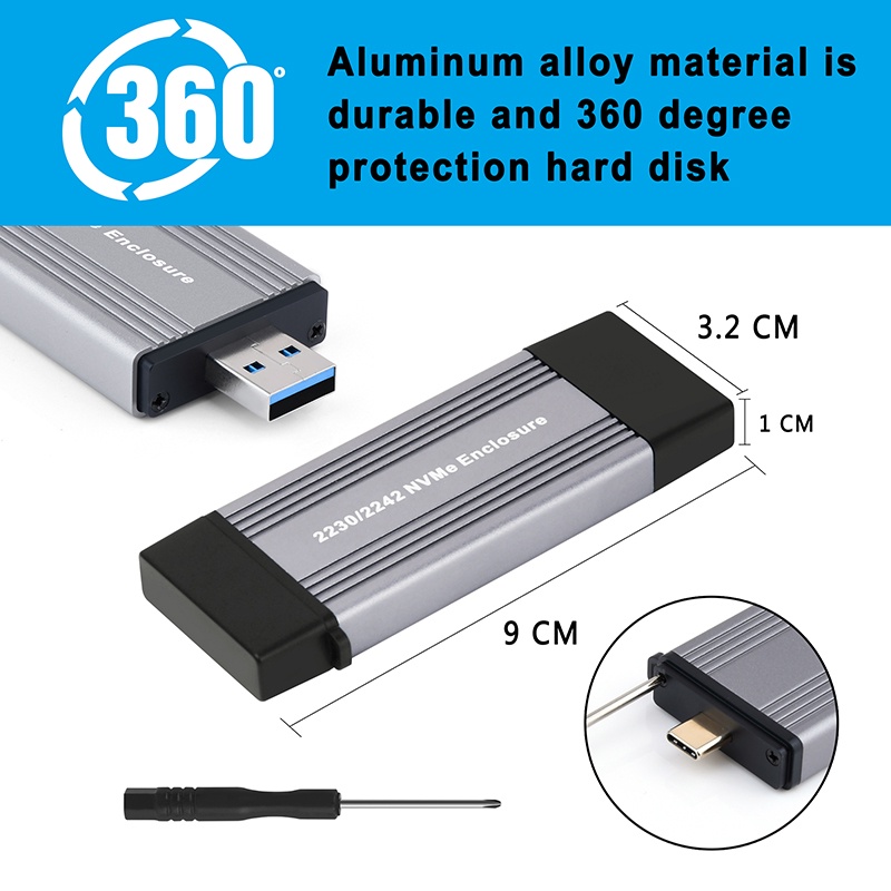 NVME Case SSD M2 Adapter NVME External Enclosure NVME M/M+B Key to USB 3.1 TYPE-A + TYPE C 10Gbps Supports 2230 2242 M.2 SSD Box