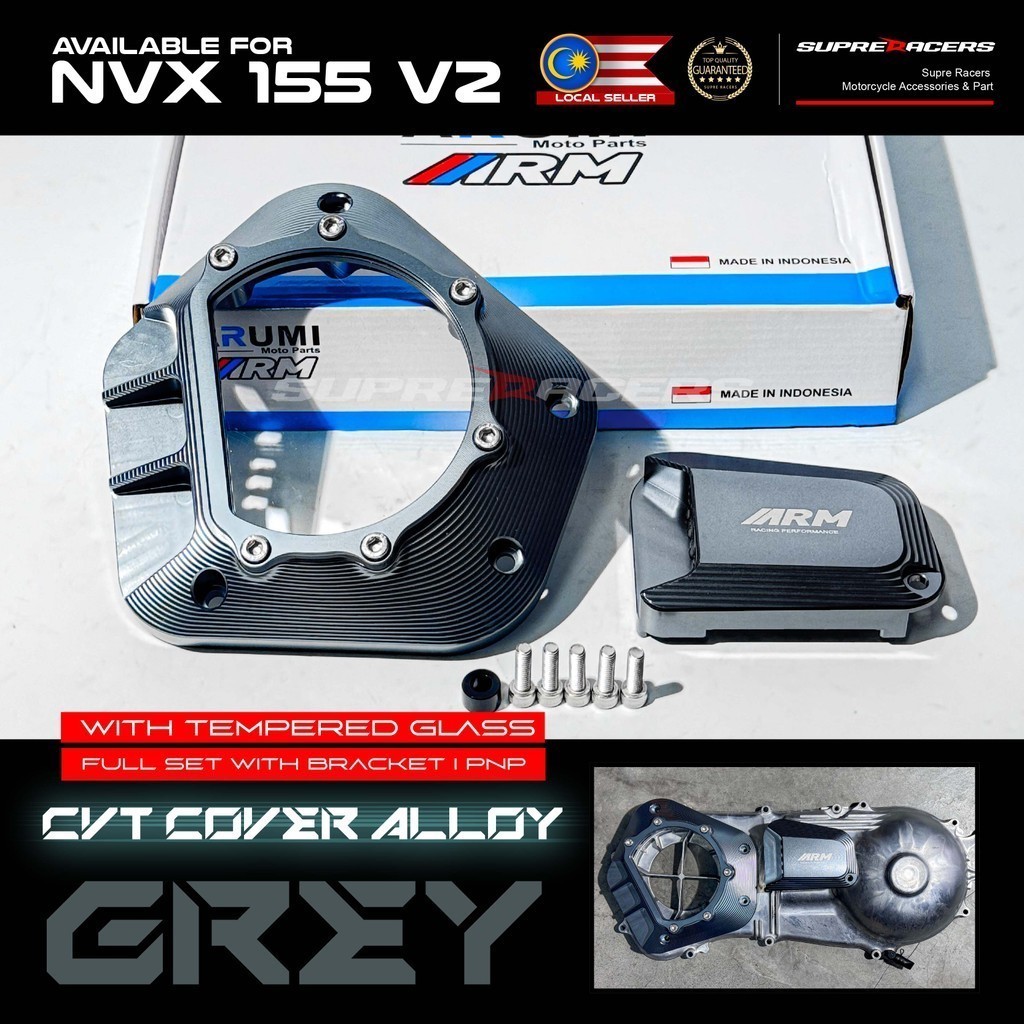 NVX V2 CVT Cover I Tutup Enjin Cover I CNC Transparent Tempered Glass I Material Alloy I PNP For YAMAHA NVX 155 V2 AEROX