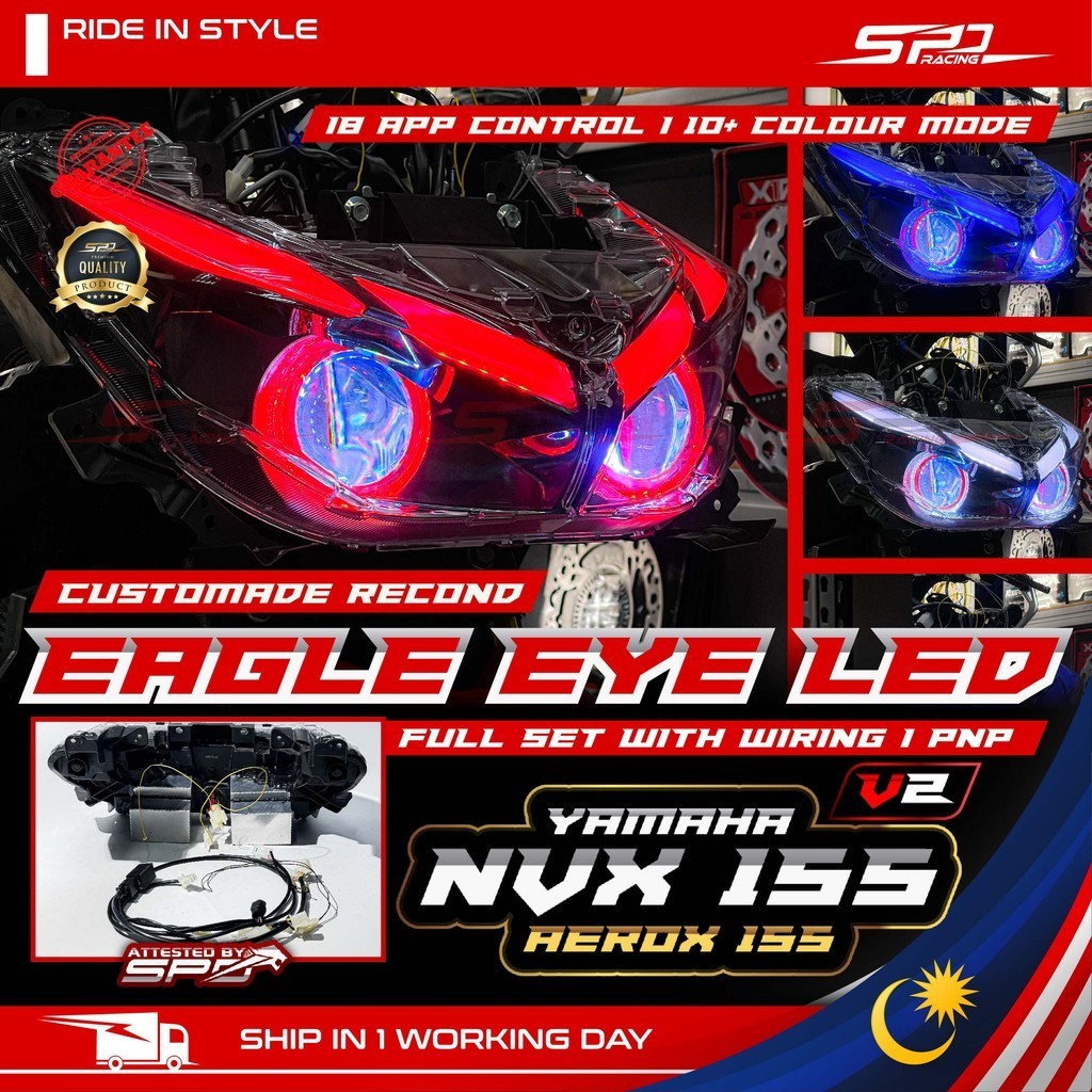 NVX V2 Eagle Eye Head Lamp LED I i8 APP Control I 10+ Colour Mode I Customade Recond PNP For YAMAHA NVX 155 V2 AEROX
