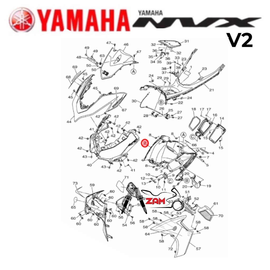 NVX155 NVX V2 INNER LEG SHIELD 2 CENTRE CENTER TENGAH INNER MIDDLE MAIN SWITCH COVER KEY KUNCI SET 100% ORIGINAL YAMAHA