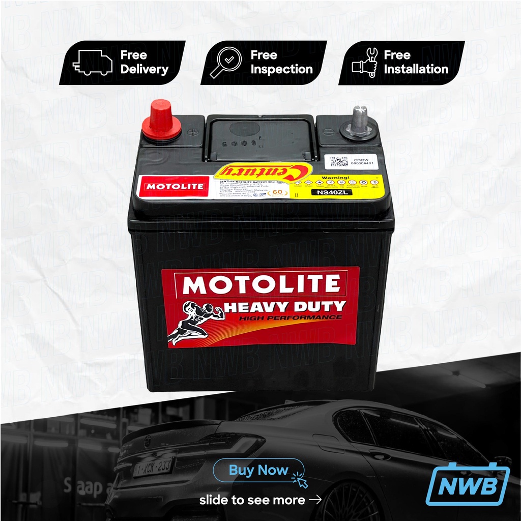 NW NS40 NS40ZL Battery Motolite Car Battery Myvi Battery Alza Bateri Kereta NS40 Bateri Myvi Bateri Axia Viva Kancil
