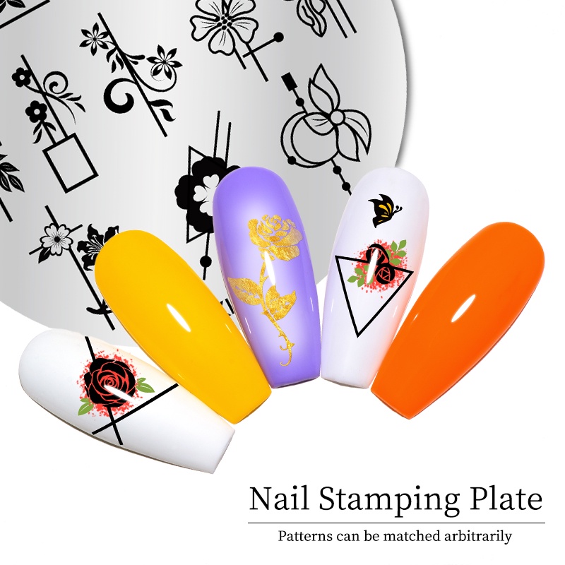 Nail Stamping Plates Flower Design Stripe Line Nail Art Plate Stainless Steel Design Stamp Template Printing Stencil Tools