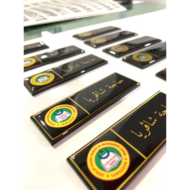 Name tag Shel Epoxy Full Color Printing/Customade Silver Base Name label