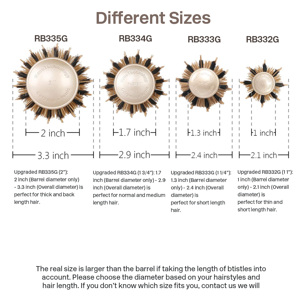 Nano Ceramic Round Brush Aluminum Radial Hair Ionic Comb In 5 Sizes