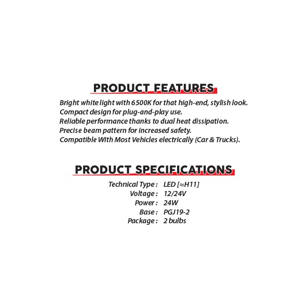 Narva Range Performance LED H11 6500K 12V 24V Car Headlight Bulb (Pair)