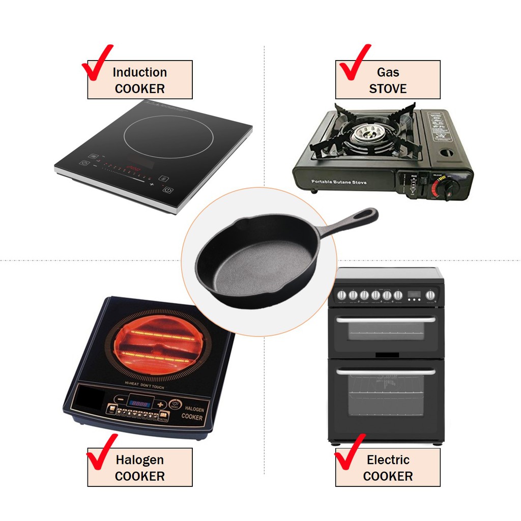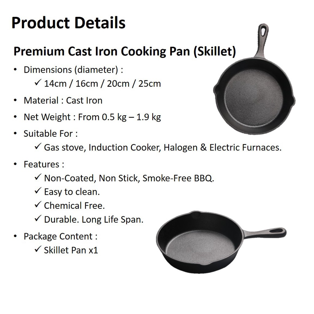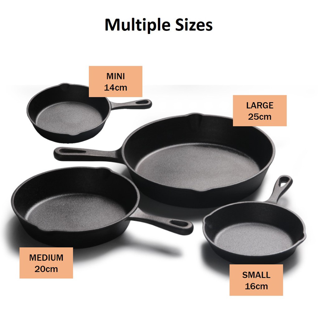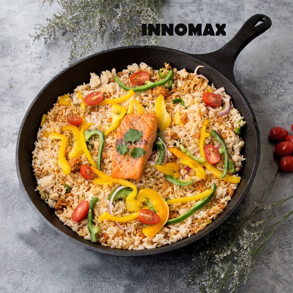 Innomax Natural Cast Iron Skillet Grill Pan Kuali Non Stick BPA Chemical Free Durable Fry Pan BBQ