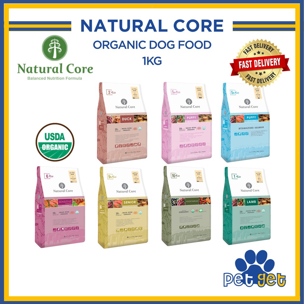 Natural Core Dog Food - 1KG Organic Dog Food for Puppy / Lamb / Duck / Sensitive Salmon / Slim Duck / Senior Salmon