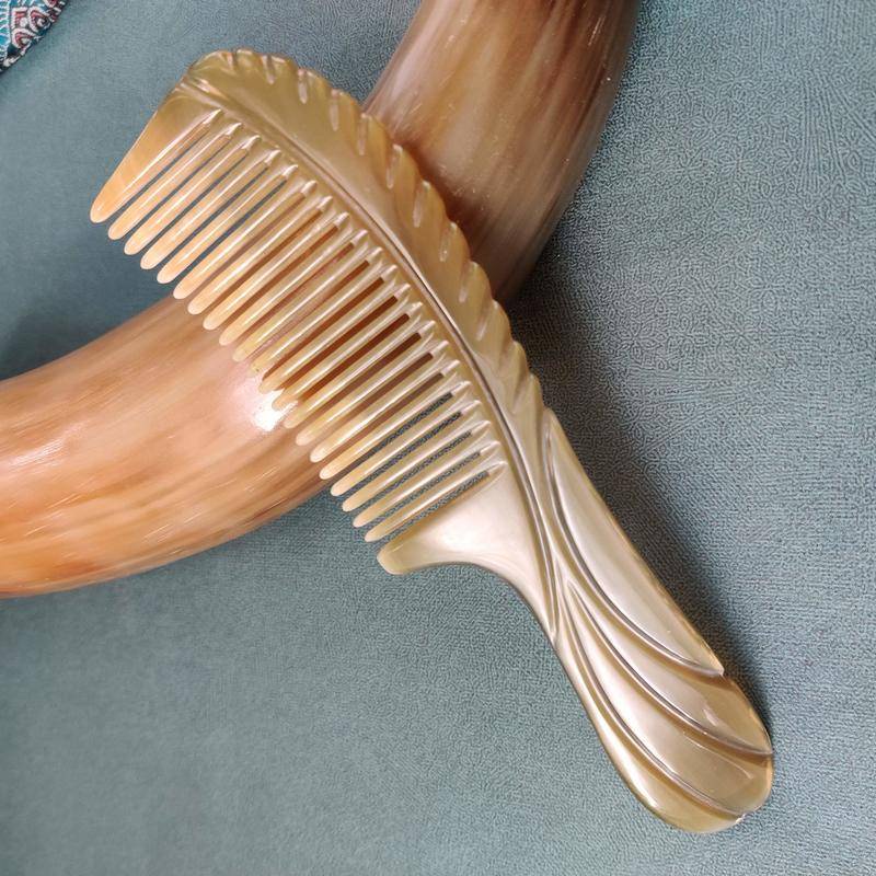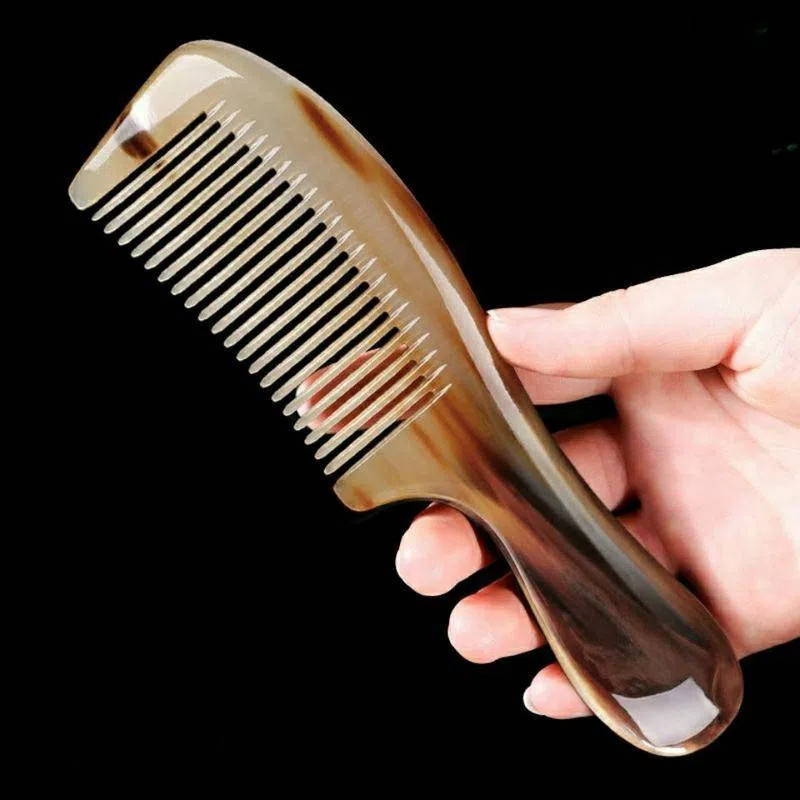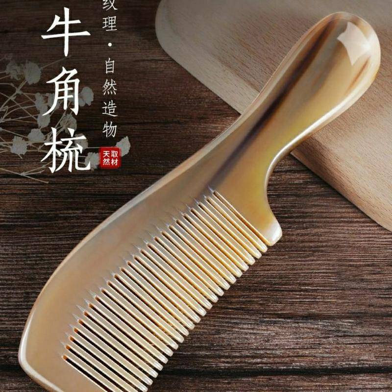 Natural Cow Horn Comb Anti Static Hair Comb Round Handle Fine Tooth Hair Massage Comb Brush Styling Tools