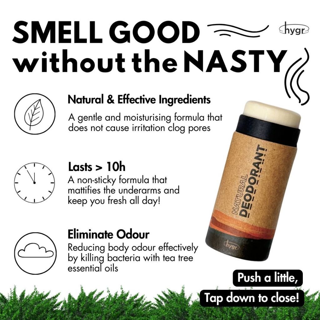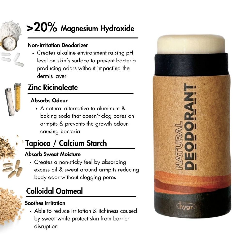 HYGR Natural Deodorant Stick|Strong Odour Protection for Active Days|Gentle on Sensitive Skin|Smooth, Non-Irritating