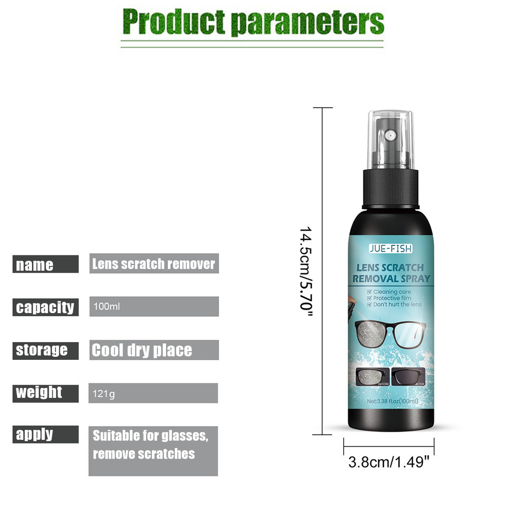 Natural Ingredient Lens Scratch Remover 100ml Spray Eyeglass Blurred Cleaner Maintenance Repair Renovation Solution