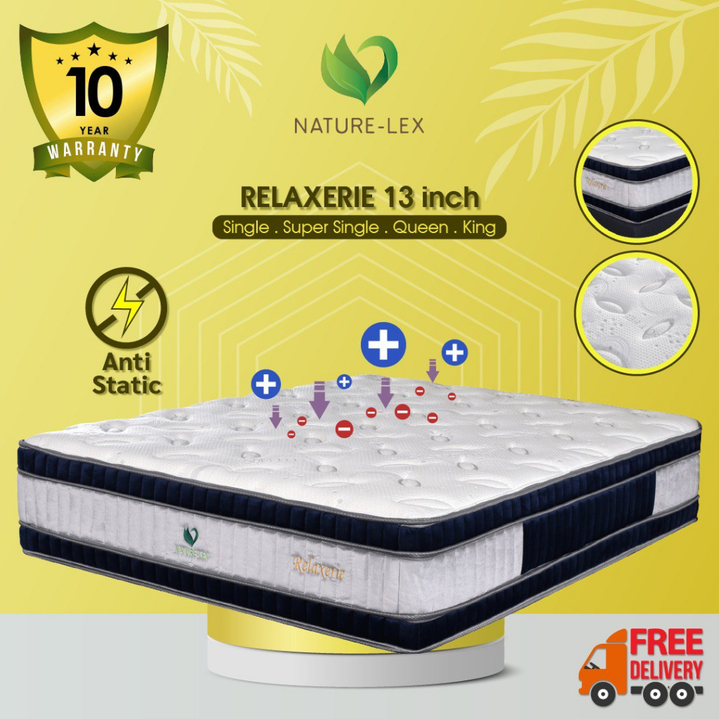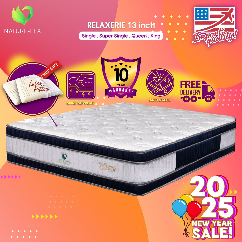 Natural Lex Relaxerie 13 Inch 9 Zone Pocket Spring Natural Latex Mattress Tilam QUEEN / KING