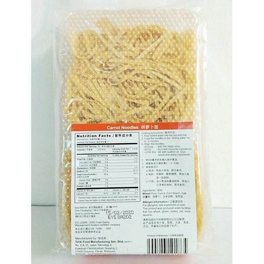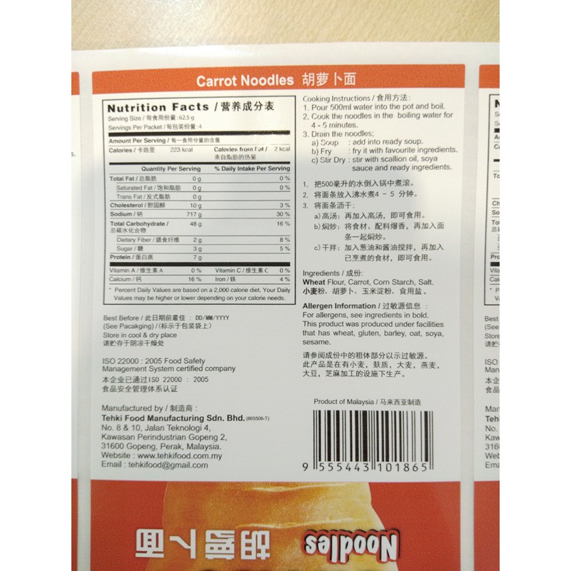(Exp Date: 05/2023) Natural Carrot Noodle, Air-Dried (No Wax) Nutrition Noodles, Hand Made Ramen Mee Lobak @ Tehki - Car
