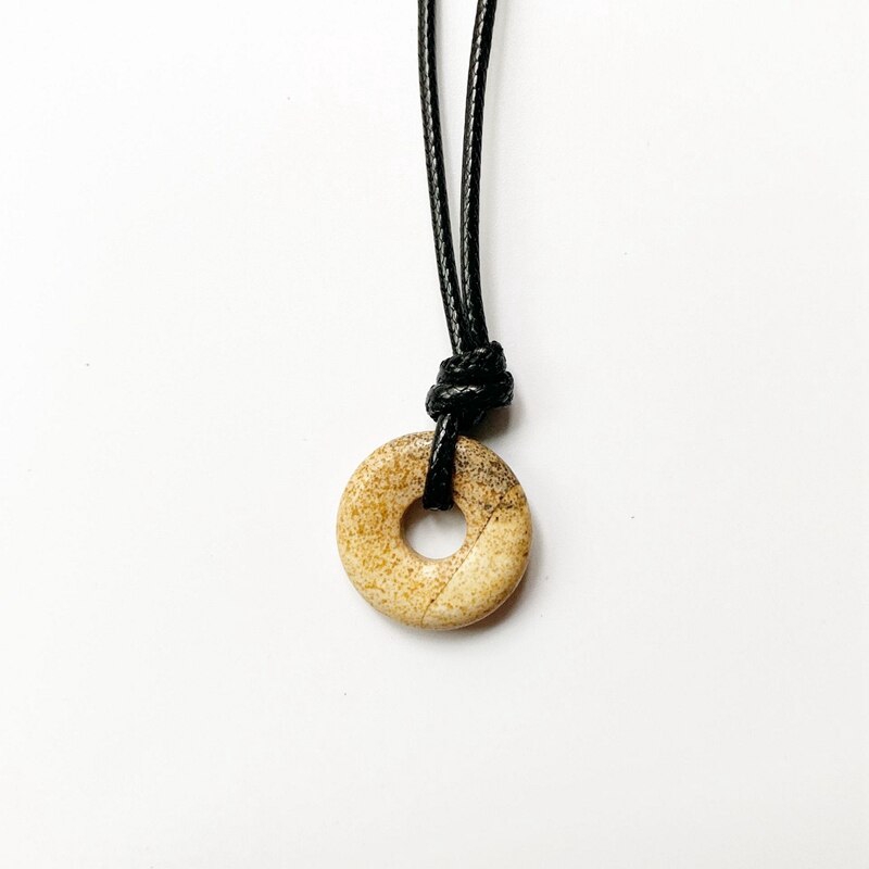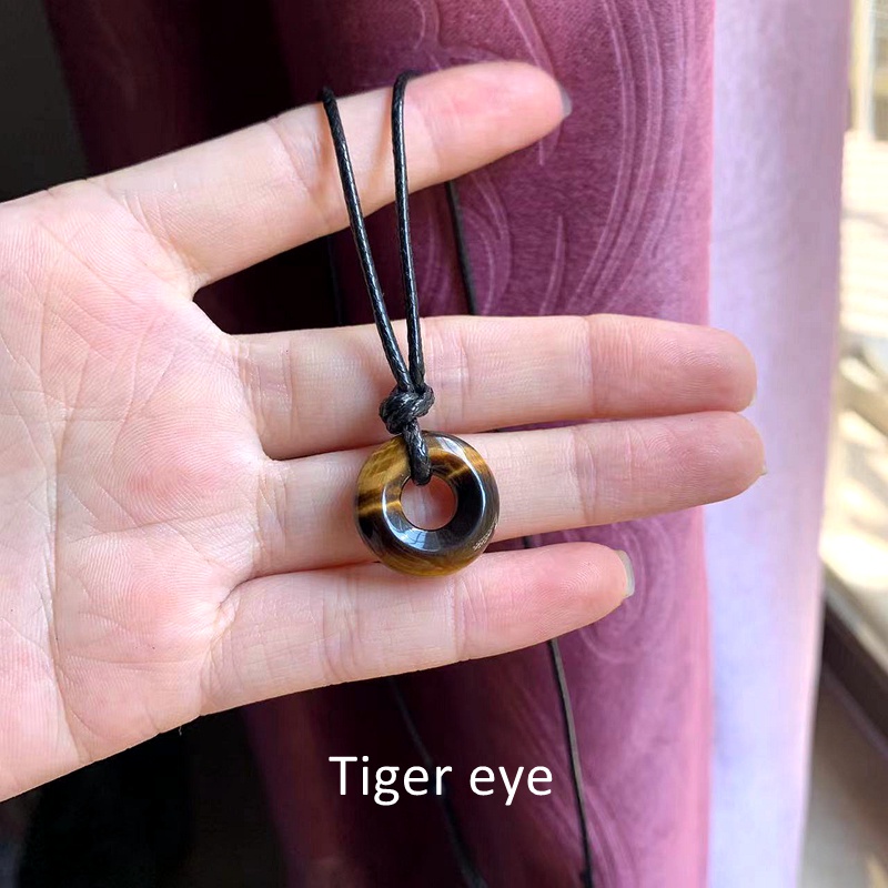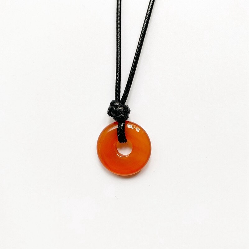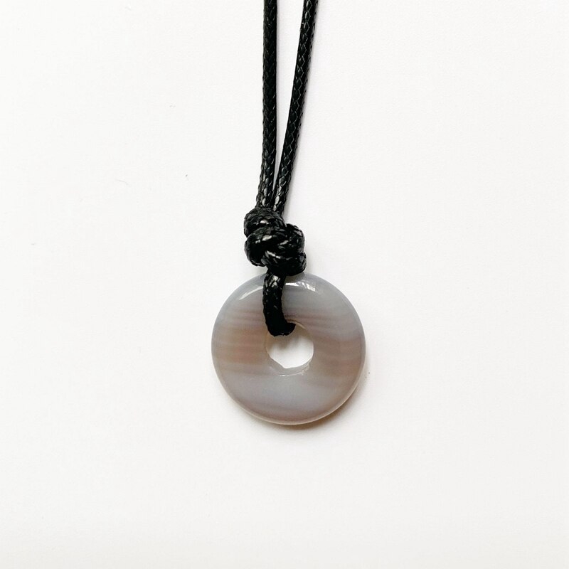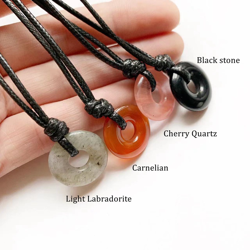 Natural Stones Jewelry Round Crystal Pendant Circle Stone Lucky Necklace Black Wax Rope Chain Handmade Neck Jewelry 1pc