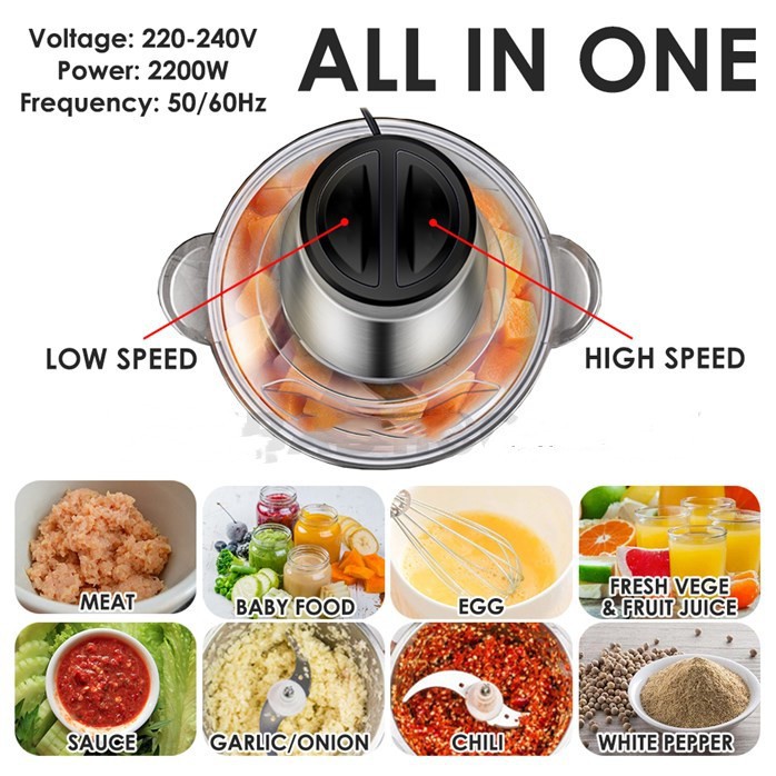 MA Home Stainless Steel Mini Mixer & Blender 2L Pengisar Daging Food Chopper Electric Meat Grinder Juice Maker Processor