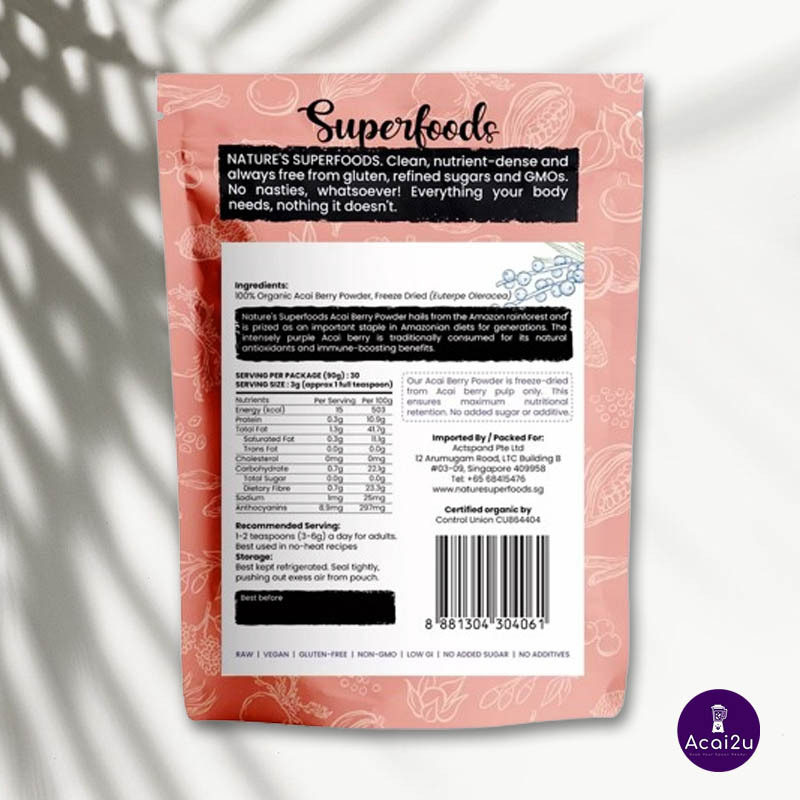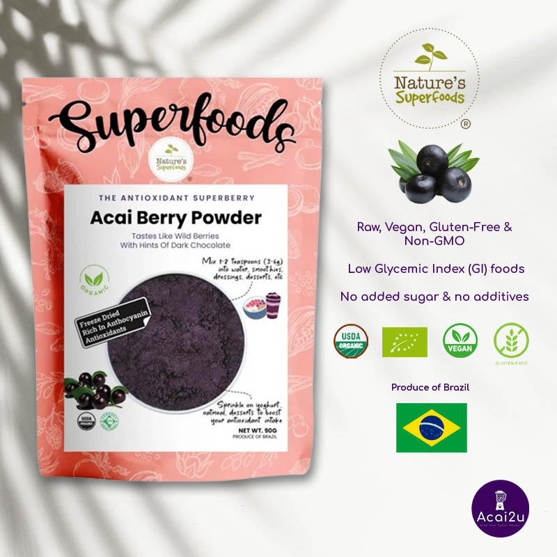 Nature's Superfoods Organic Acai Berry Powder, Freeze Dried, 90g Resealable Pack
