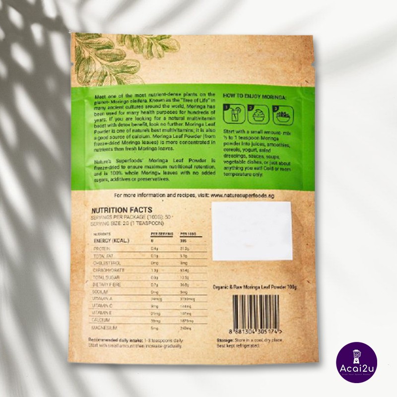 Nature's Superfoods Organic Moringa Leaf Powder, 100g, Resealable Pack