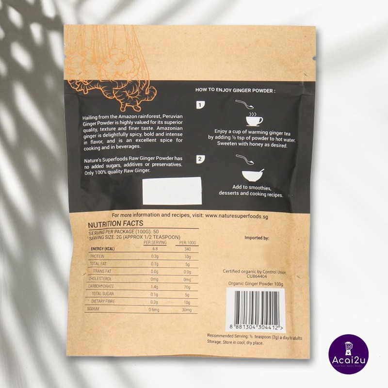 Nature's Superfoods Organic Raw Peruvian Golden Ginger Powder, 100g, Resealable Pack